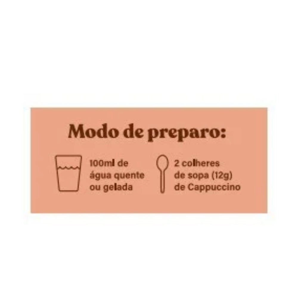 O pote vem com 120g de Cappuccino, e você pode consumir colocando uma colher de sopa pra cada 200ml de água. Depois de aberto, consumir preferencialmente em 30 dias, tá?