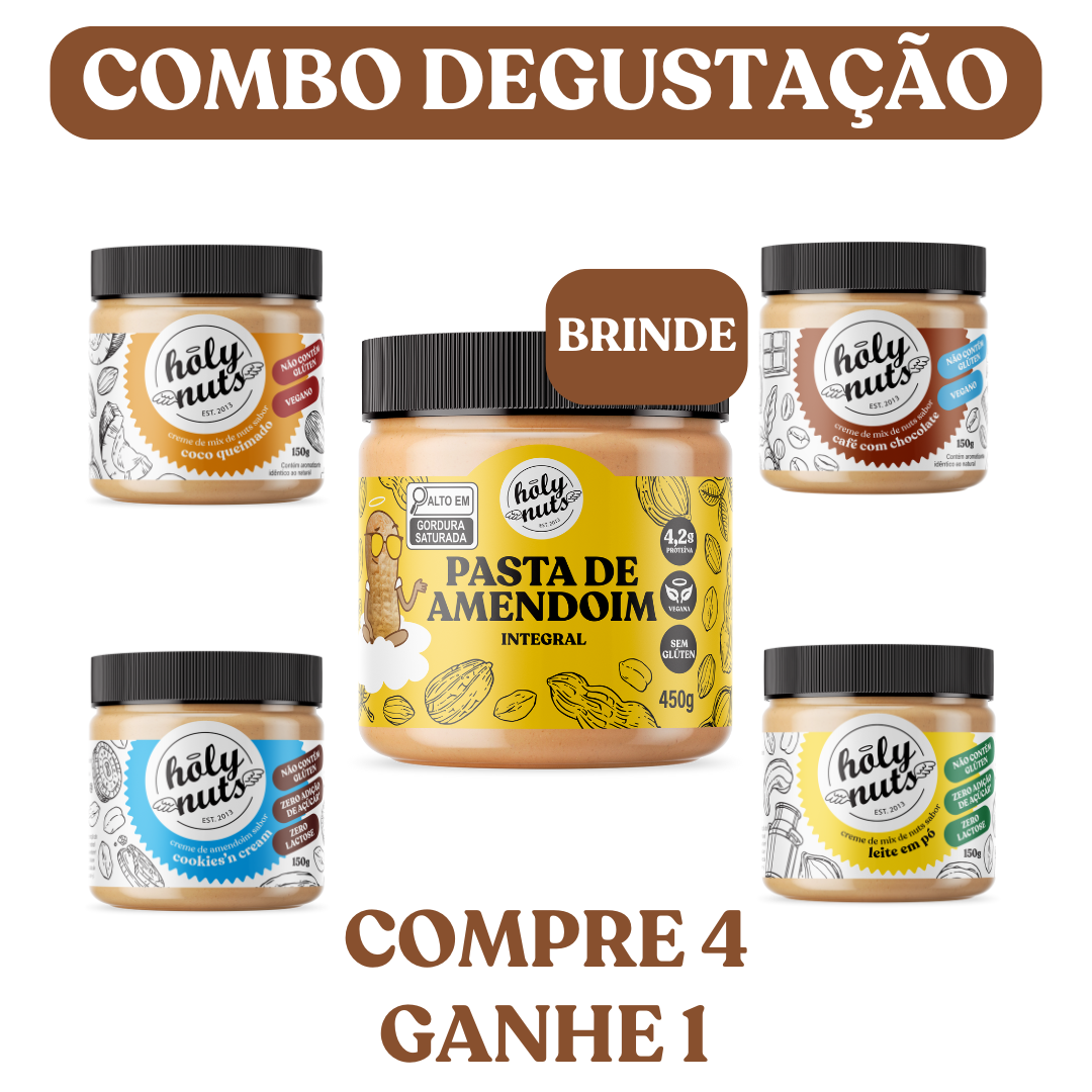 Nesse combo super especial, você leva todas as nossas pastas com sabores em tamanho 150g e a nossa tão queridinha Pasta Integral de Amendoim, suuuuuuper cremosa, uma delicia!. Aproveite que vale a pena para conhecer.